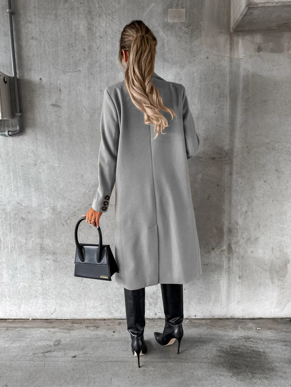 De Elara Double-Breasted Coat is gemaakt voor vrouwen die houden van een verfijnde, tijdloze look zonder in te leveren op warmte. Met haar slanke, double-breasted ontwerp, scherpe revers en verlengde lengte creëert deze jas moeiteloos een luxe silhouet. Perfect voor stijlvolle winterdagen, avondjes uit of nette gelegenheden.